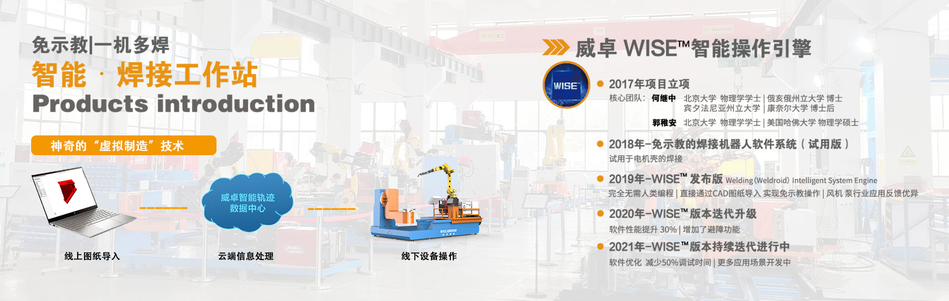 無錫威卓智能機器人有限公司成立于2017年,是無錫市政府引進的科技領軍型高新技術(shù)企業(yè),公司研發(fā)團隊80余人,我們堅持自主創(chuàng)新,利用自主開發(fā)的虛擬制造技術(shù)對傳統(tǒng)焊接行業(yè)進行升級改造。 公司主推的工業(yè)風機系列-智能焊接工作站產(chǎn)品,具有免示教、實時跟蹤、簡易工裝、傻瓜式操作等優(yōu)點,真正幫助企業(yè)解決了招焊工難,用工成本高,焊接質(zhì)量不穩(wěn)定等問題。